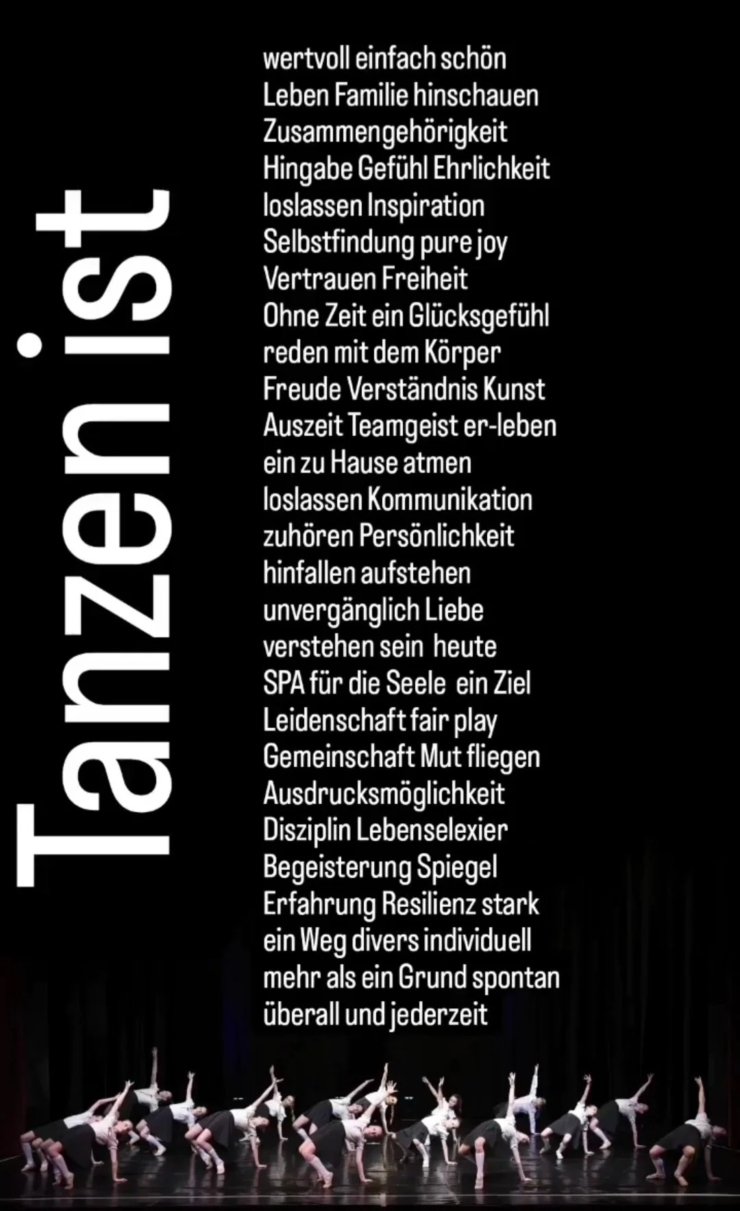 Tanzen fördert Verständnis, Toleranz, Teamgeist, Disziplin, Resilienz, Durchhaltevermögen,