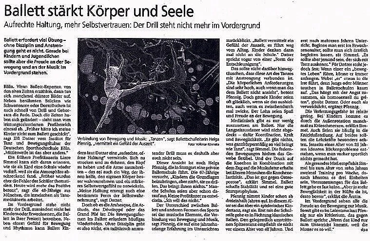 – beides Fragen, die im Tanz, bei dem es um Darstellung, um Gruppen- und Selbstdarstellung geht, einen spezifischen Akzent bekommen. Einer davon ist der Zusammenhang von Psyche und Körperhaltung, z. B. von innerer und äußerer Haltung, von Körperbeherrschung als Grundlage für Fitness und Leistungsfähigkeit oder als Basis für die Fähigkeit zum Ausdruck psychischer Befindlichkeiten, evtl. auch als Möglichkeit der Beherrschung und Veränderung psychischer Zustände.